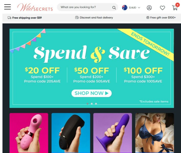 Wild Secrets are Australiaâs premium online adult store, stocking the largest range of fun and pleasurable products from sex toys to lingerie, costumes to footwear. The online store currently offers Free fast and discreet shipping over $59